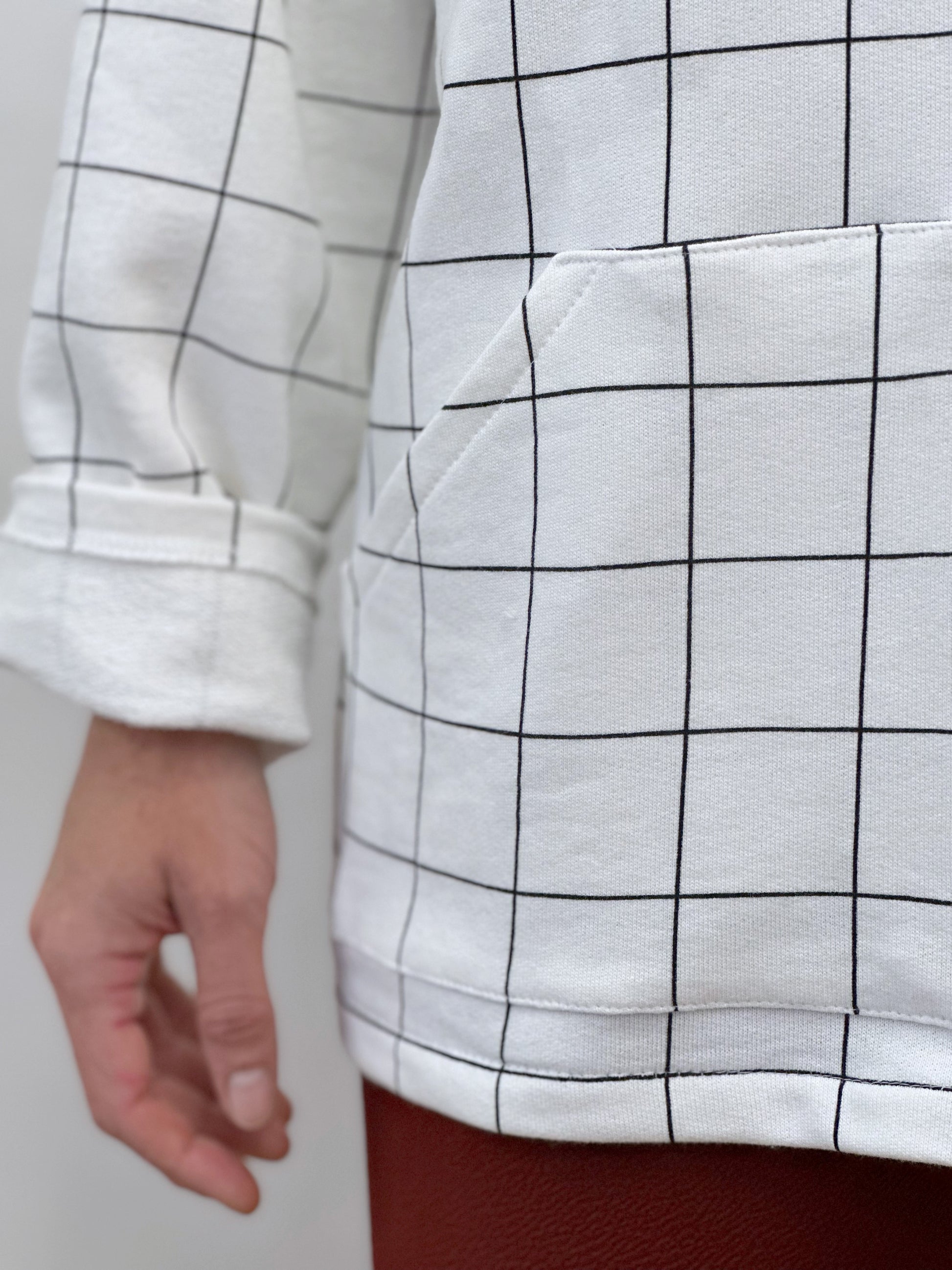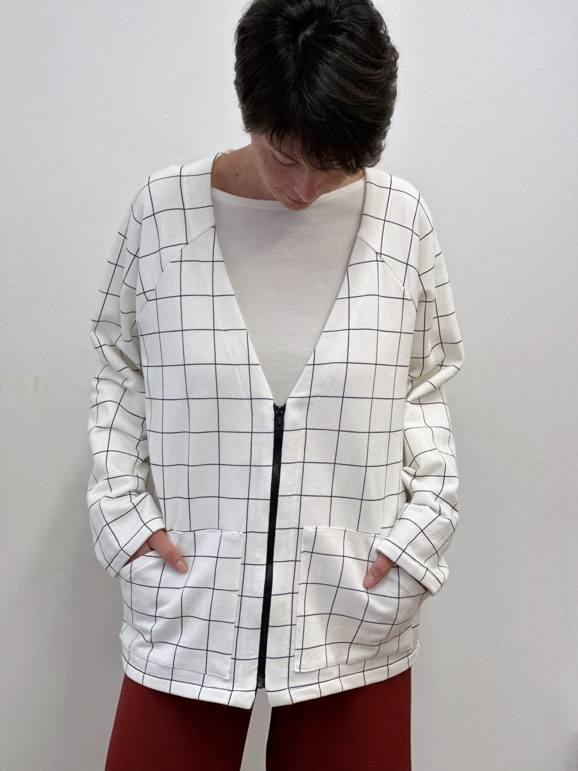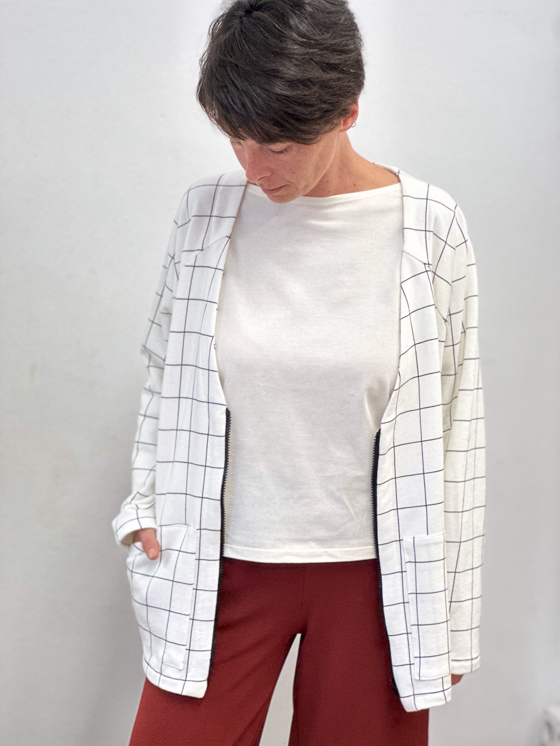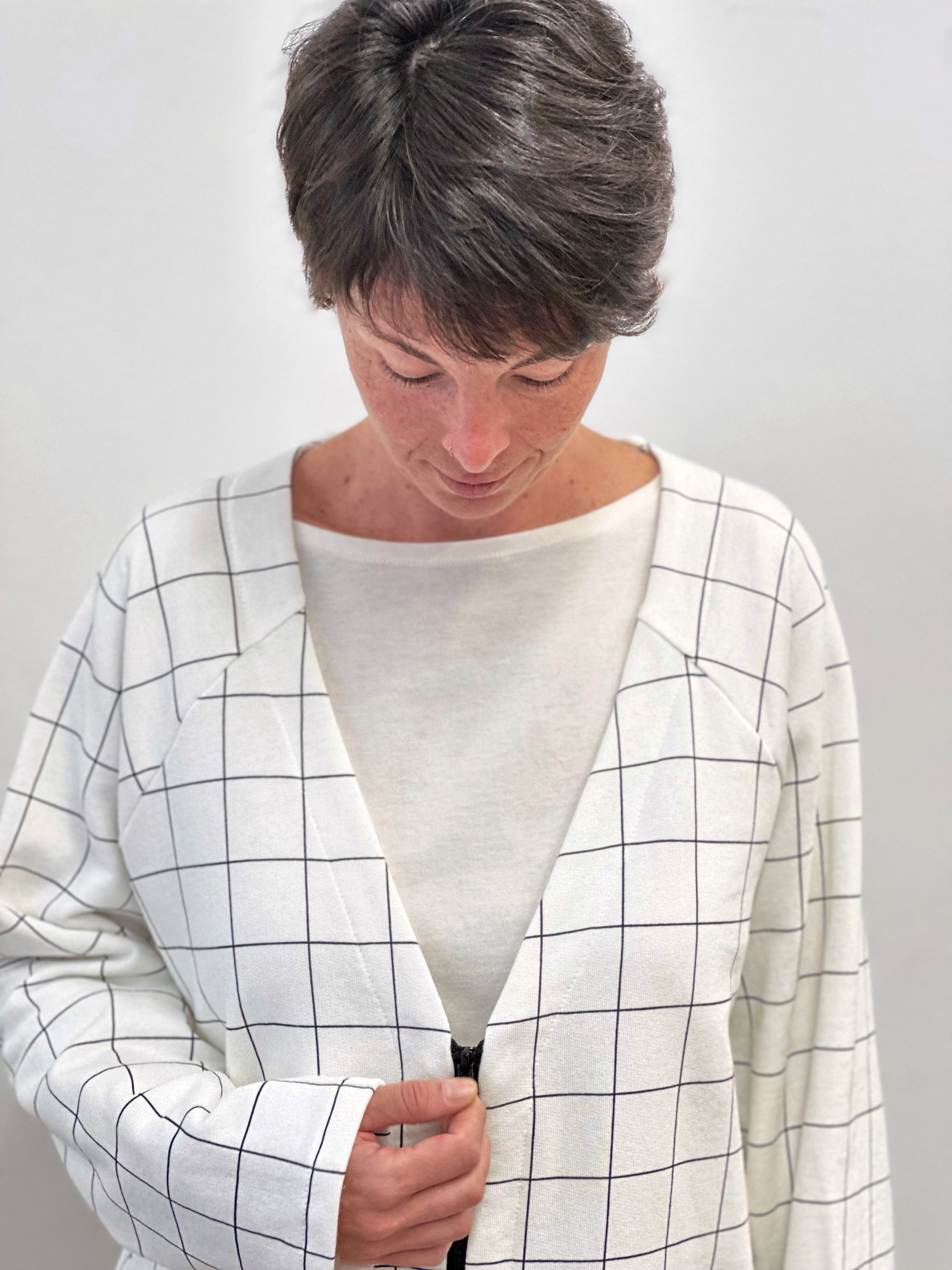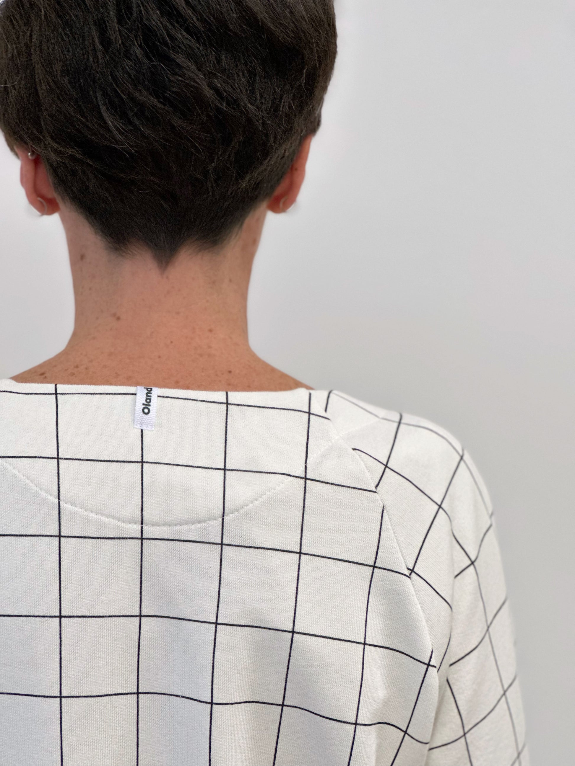 Peça nova d’aquesta col·lecció, pensada també per a homes. Confeccionada amb tela de xandall, destaca per la màniga raglan i el coll en forma de V, que li donen un aire original i molt còmode.