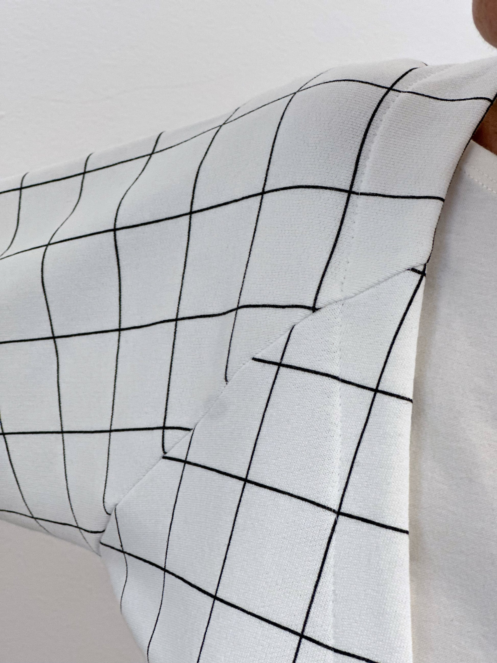 Aquesta és blanca amb línies negres que formen quadres, molt casual.