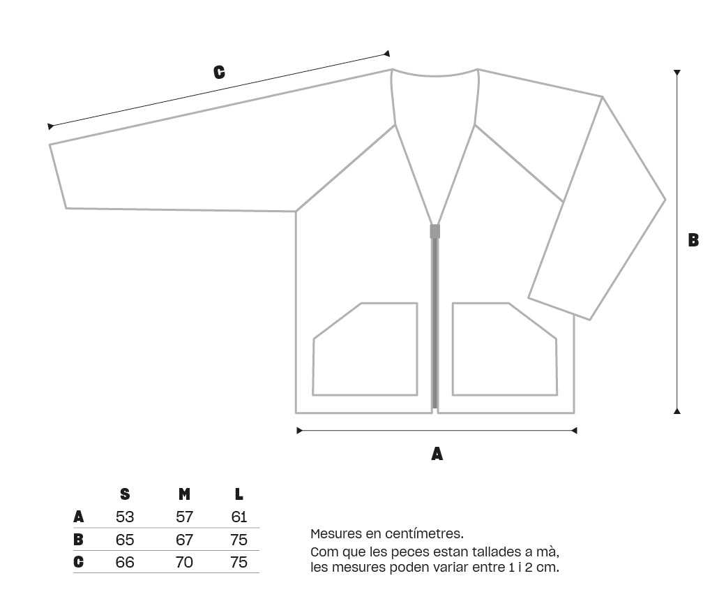 Peça nova d’aquesta col·lecció, pensada també per a homes. Confeccionada amb tela de xandall, destaca per la màniga raglan i el coll en forma de V, que li donen un aire original i molt còmode.