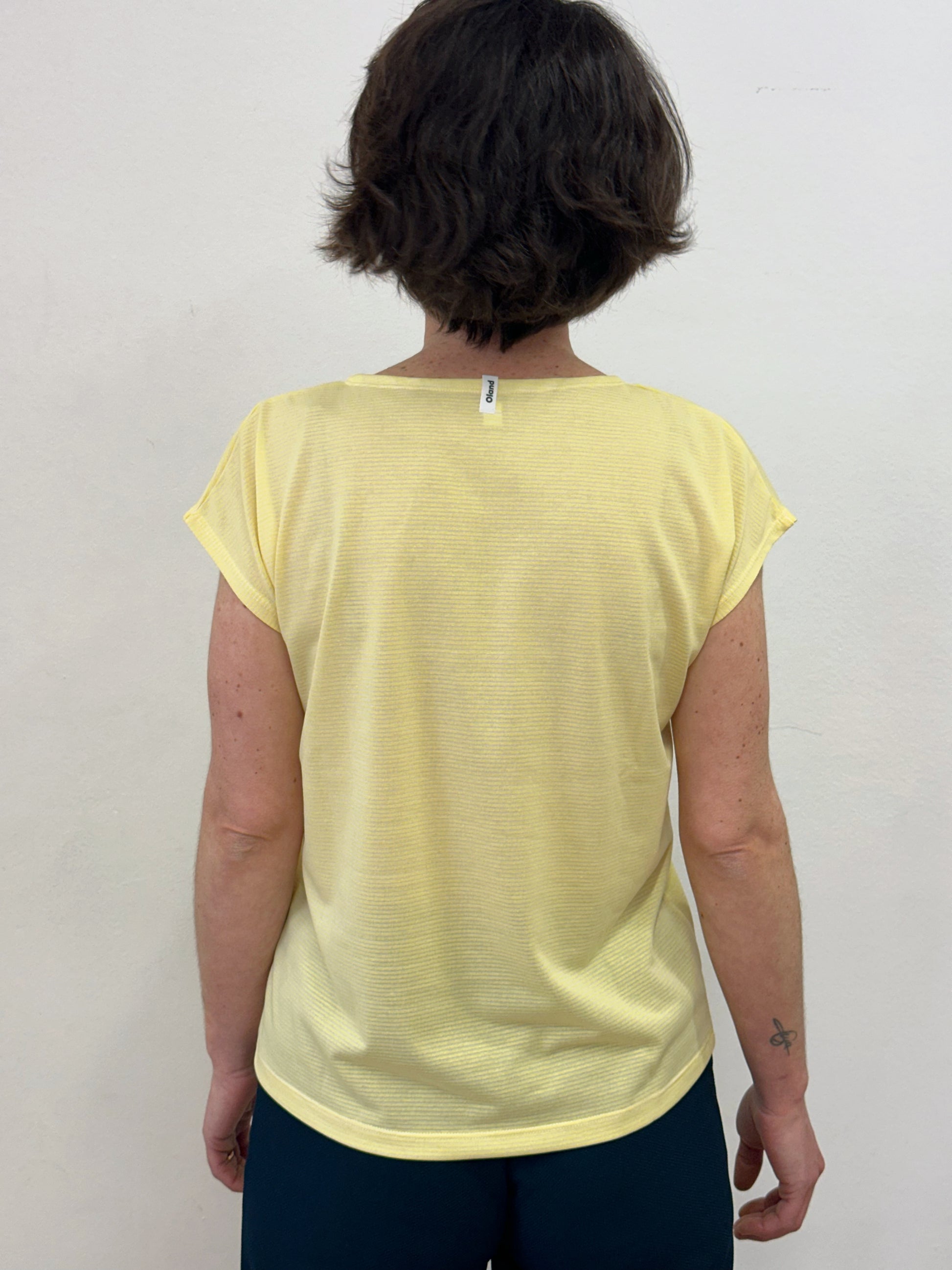 En aquest cas la roba és una mica transparent amb unes ratlletes fines grogues.